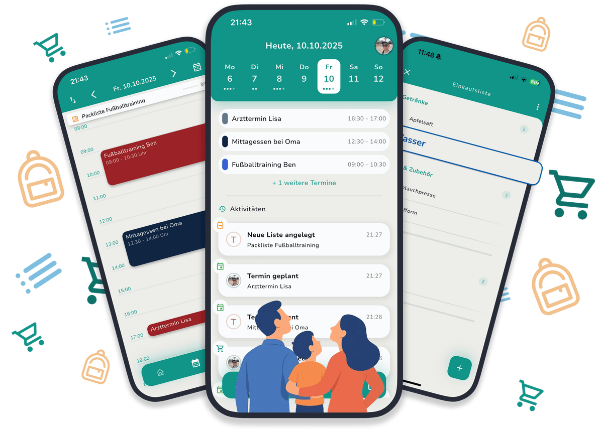 Einer trägt’s ein, alle sehen’s sofort: So bleibt euer Familienplaner immer aktuell und alle sind auf dem gleichen Stand. Egal ob Termine, Aufgaben oder Einkäufe – ihr behaltet gemeinsam den Überblick.